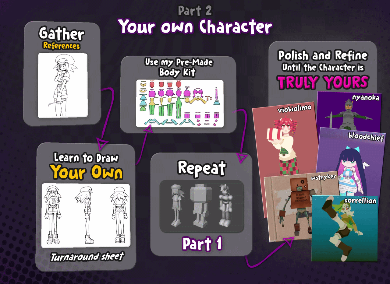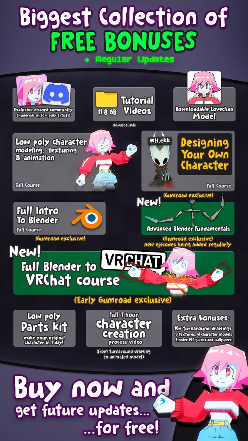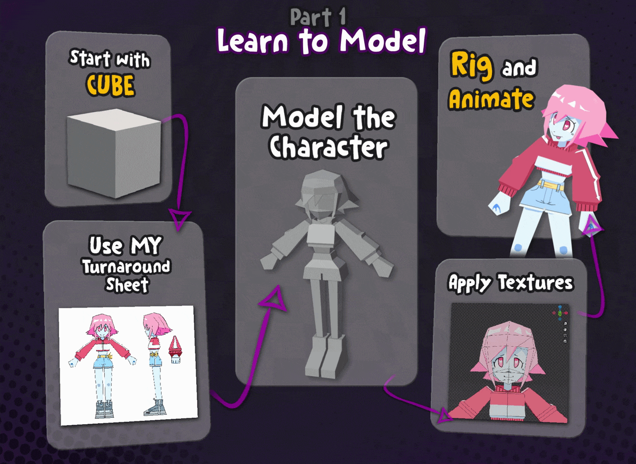 It also includes downloadable final character models, turnaround drawings, an extremely helpful Discord community, and a lot of extra bonus content to support you along the way.