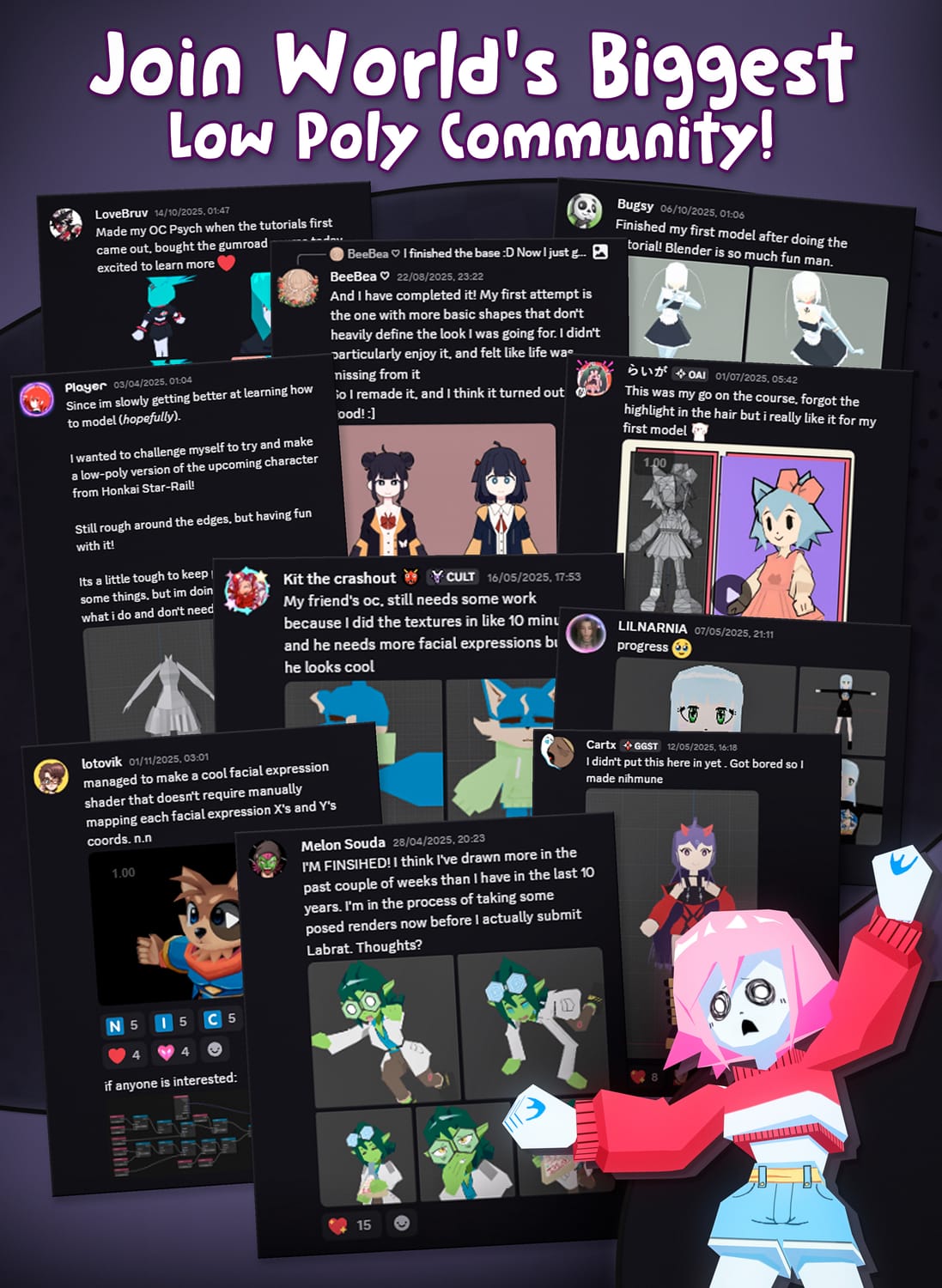 Wallpapers, full process videos (7 hours of modeling!), a low poly body parts kit, and more â¨