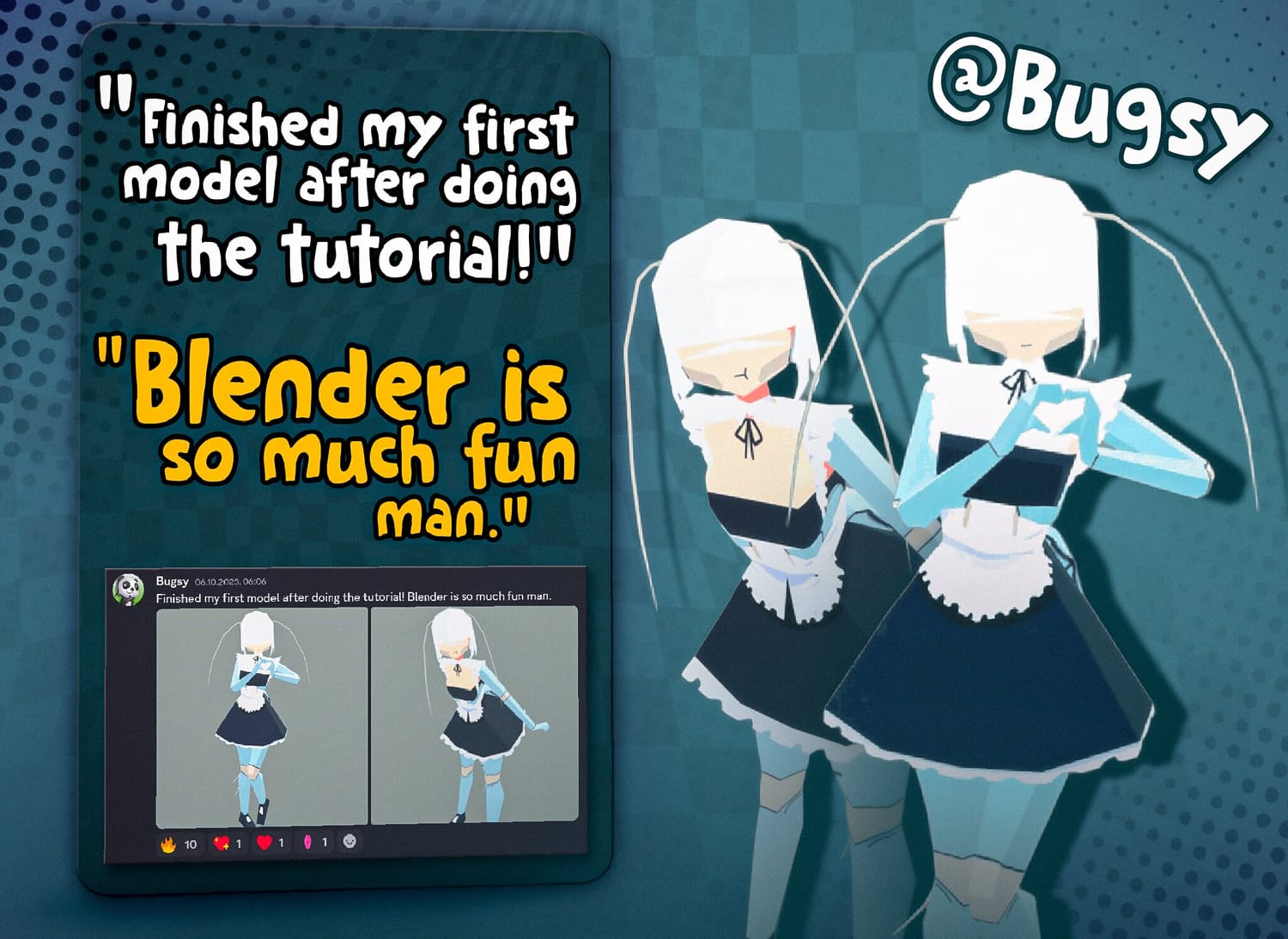 This course is perfect for complete beginners and intermediate Blender artists who want to create stylized characters and actually finish them.